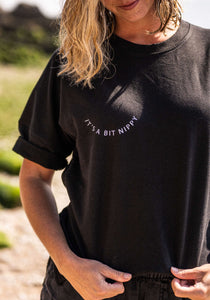 Last few pieces left in the archive from a collaboration we did a few years ago with coppafeel. Fab thick t-shirt. We had some minor issues with fading of the writing on the back of the neck after washing on some items (doesn't affect the boob Nippy wording) but all in all a cool T.