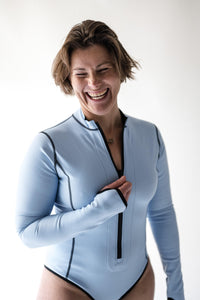 Bonded Long Sleeve Swimsuit - Powder Blue/Black - XL - Imperfect Stock